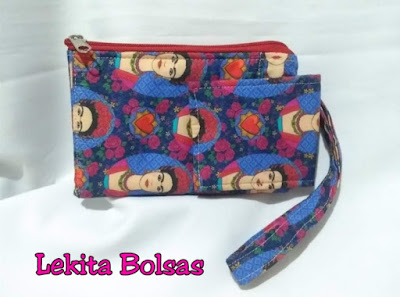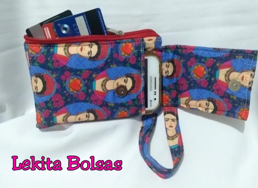 Porta celular com carteirinha para dinheiro e cartões, revestida em tecido, estruturada com manta R1.