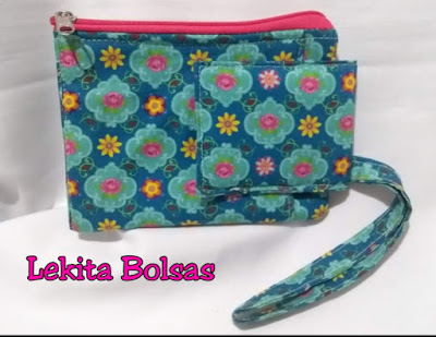 Porta celular com carteirinha para dinheiro e cartões, revestida em tecido, estruturada com manta R1.