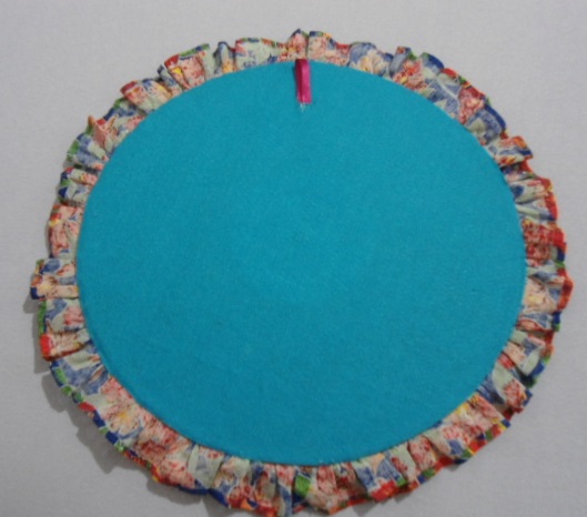 Painel de feltro feito com disco de vinil de Nossa Senhora Aparecida.