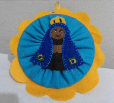 Mandala de Nossa Senhora da Aparecida feita com feltro e CD.