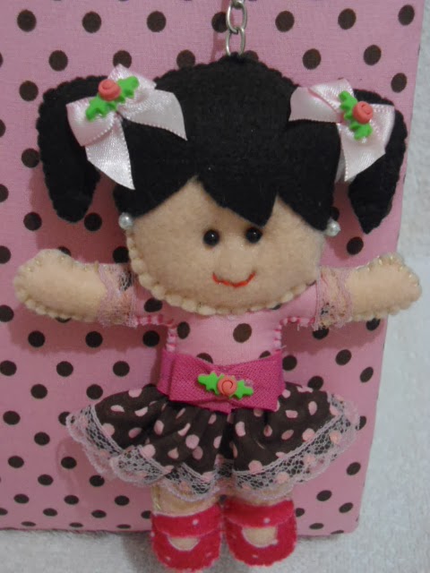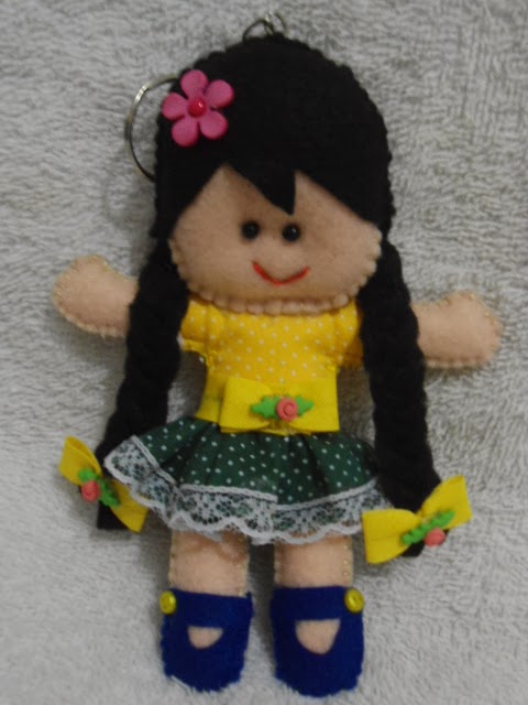 Fiz alguns Chaveiros de Bonequinhas feitos com feltro.